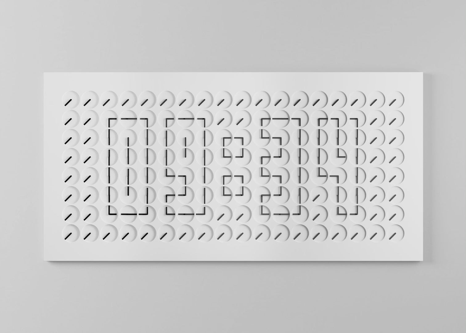 A million times‘ is a kinetic sculpture that uses hundreds of small wall clocks to create a ‘meta-clock’ that displays the time using the hours and minutes hands of each clock in a digital-like display